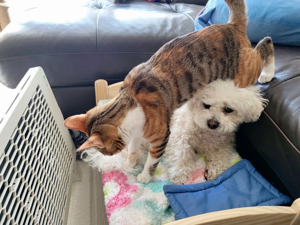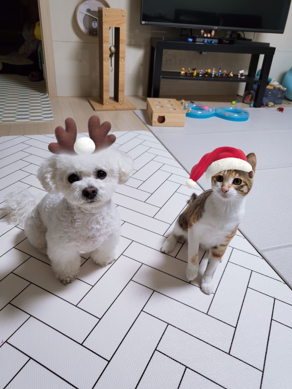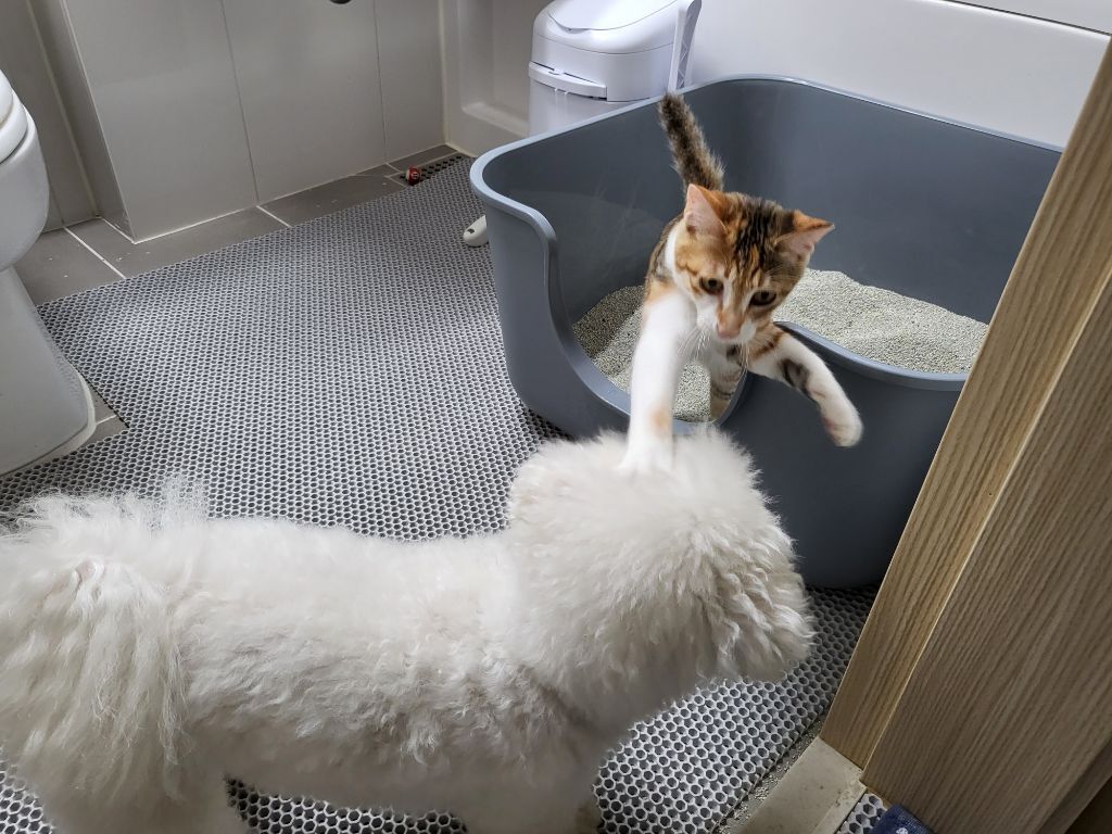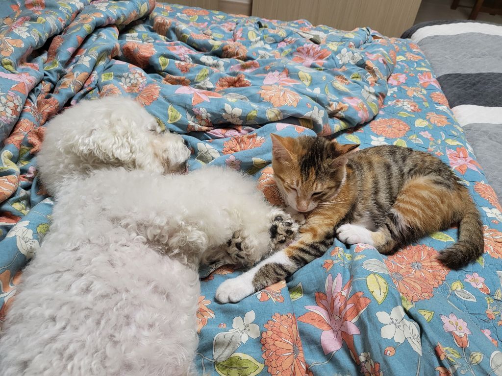 처음부터 잘 지낸건 아니라 고양이 오고나서 2주 정도는 공간 완전히 분리 시켜놨었고 한달동안 합사 훈련 엄청 열심히 했어