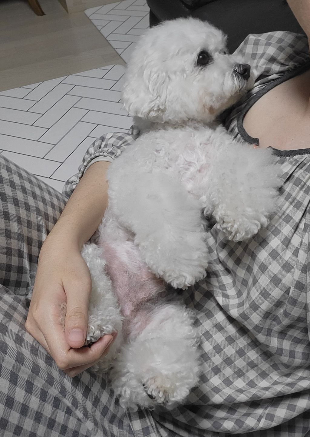 나도 모름,,, 그냥 갑자기 강아지 위로 올라갔어,,, ㅋㅋ