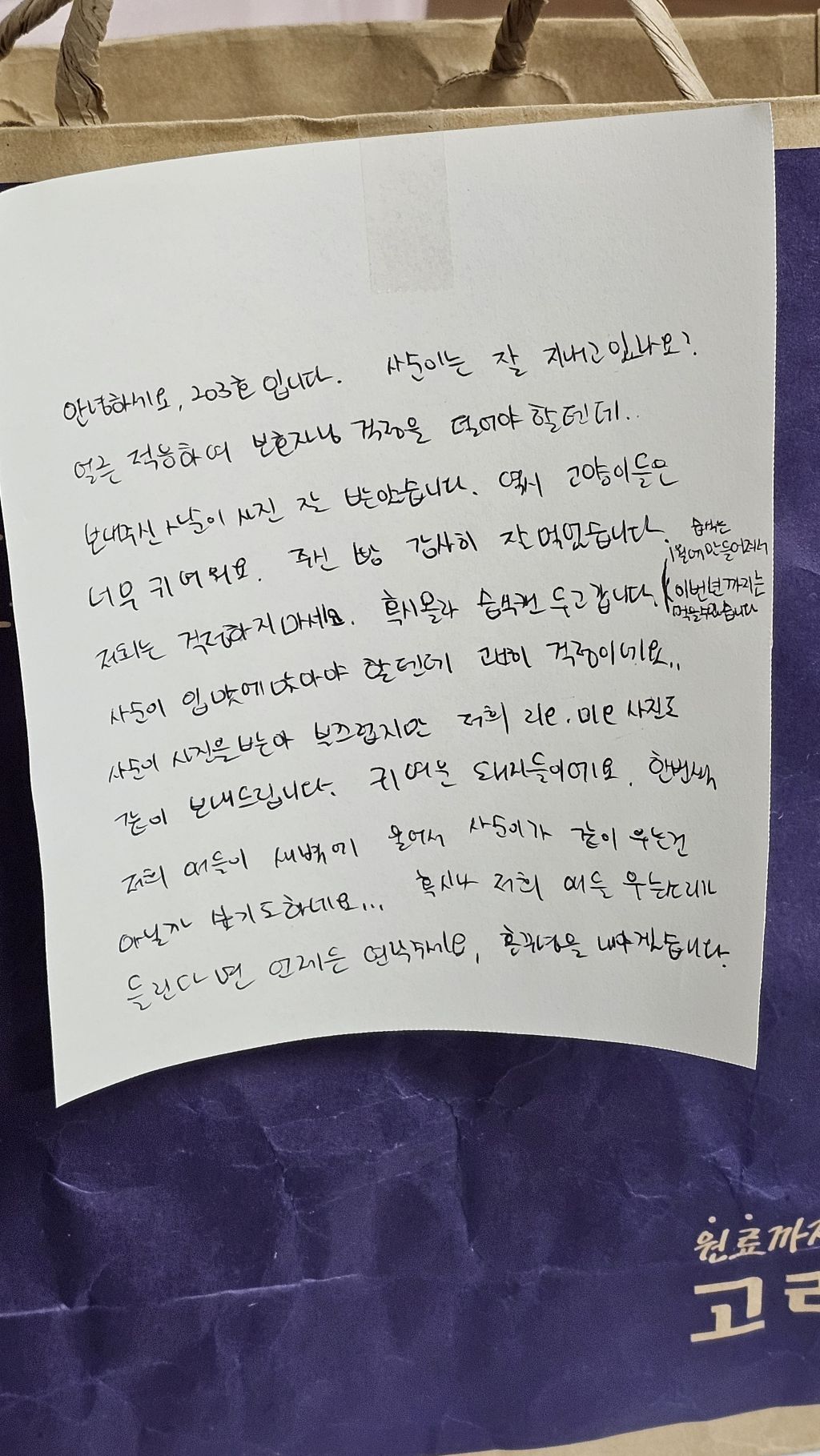 우리가 303호고 옆집 302호분이 잘못 적으신 거 같아 ㅋㅋㅋ 편지 보고 나도 엄청 웃었엌ㅋㅋ