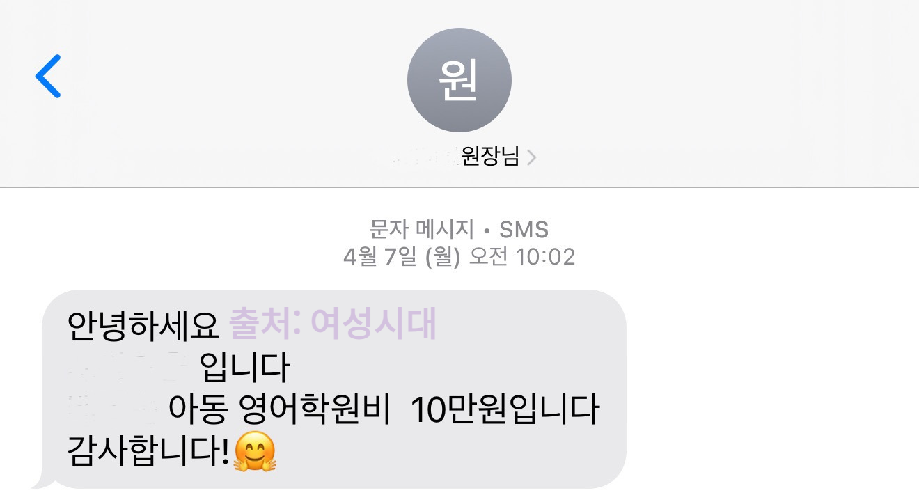 학원비 10만 원이라고 원장님이 알려 주셔서