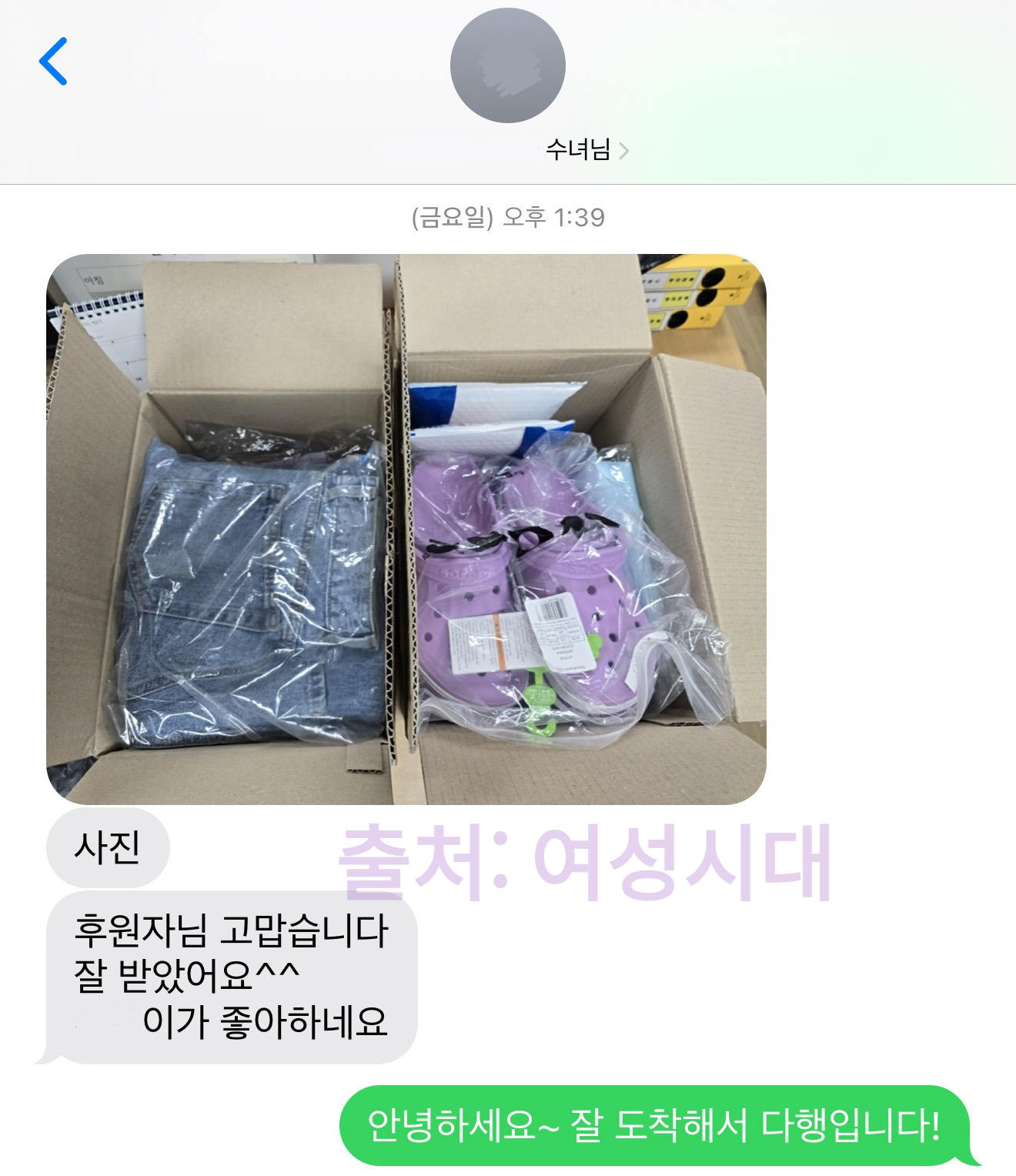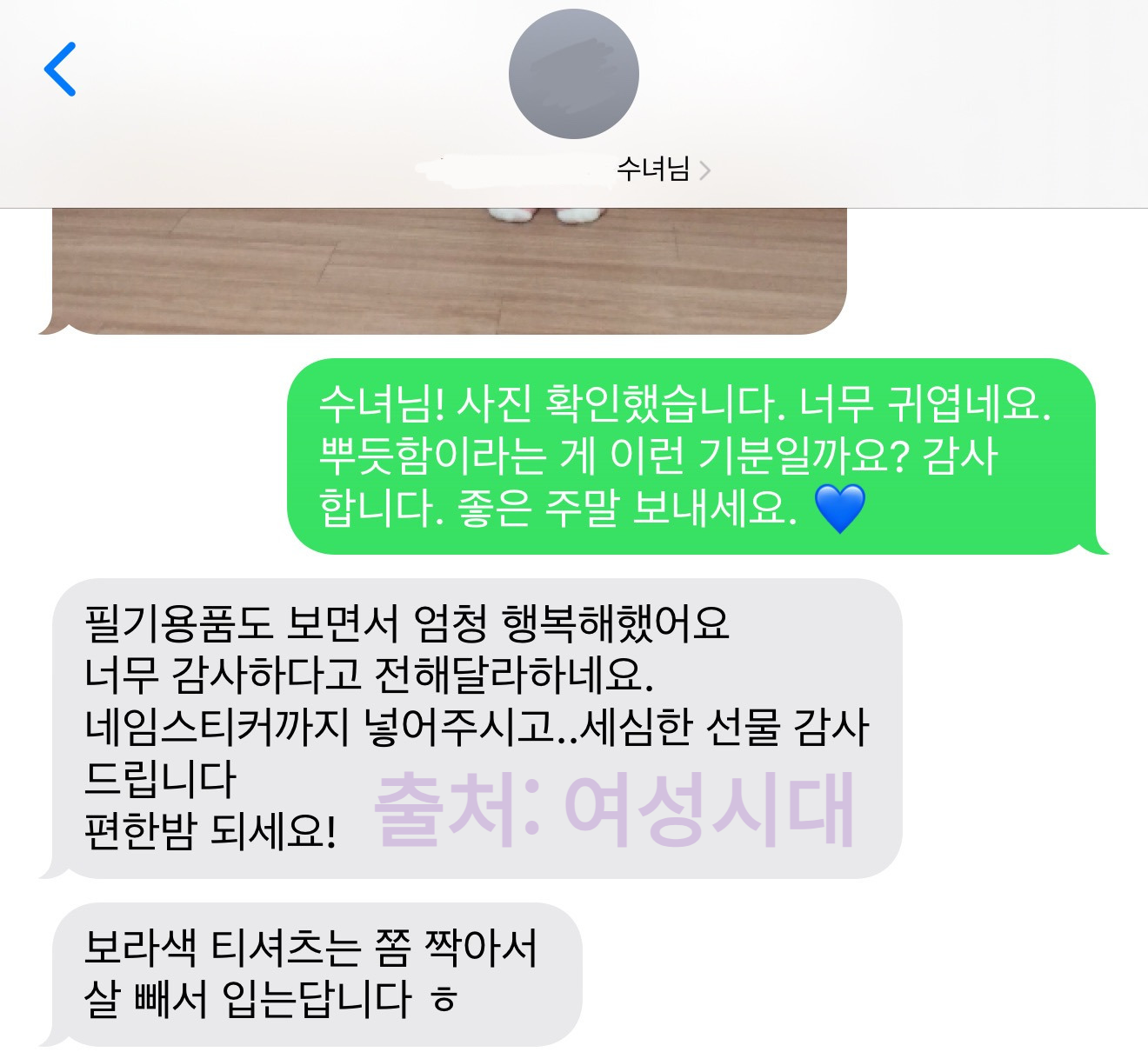 담당 수녀님께서 잘 받았다고 이렇게 인증 사진도 주셨어