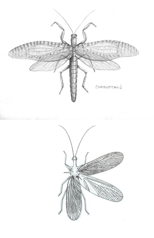 칼리그람마가 명주잠자리와 같은 풀잠자리 목임에도 불구하고