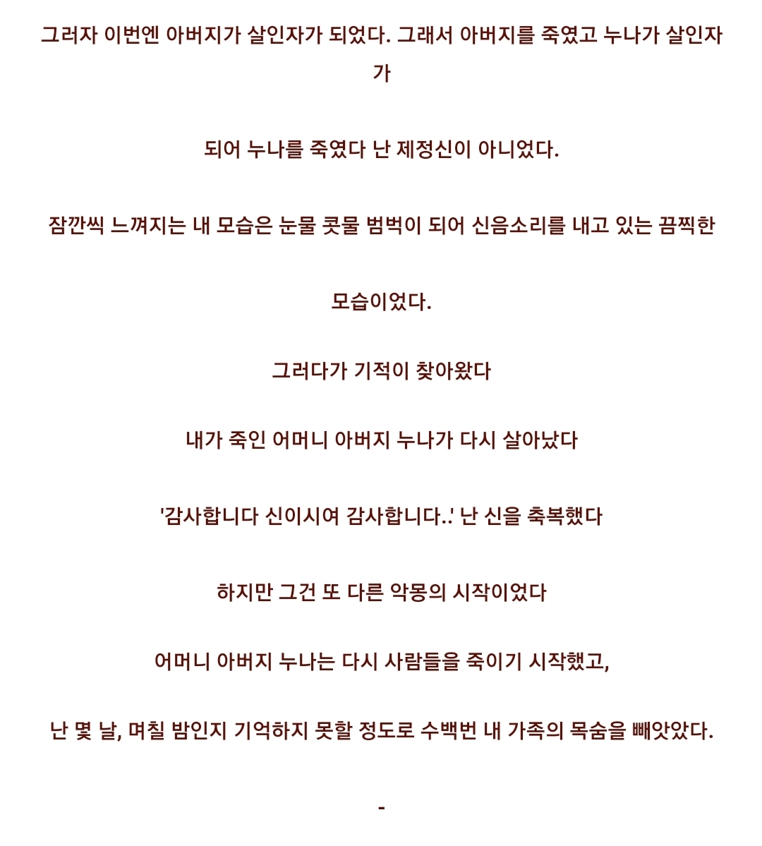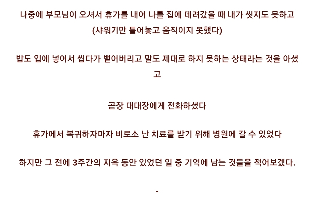 작성자그대는 총천연색 작성시간 22.03.18 어우 글을 읽으면서 내 숨이 턱턱 막힌다 이분 정신력 진짜 너무너무 존경스러울 뿐..