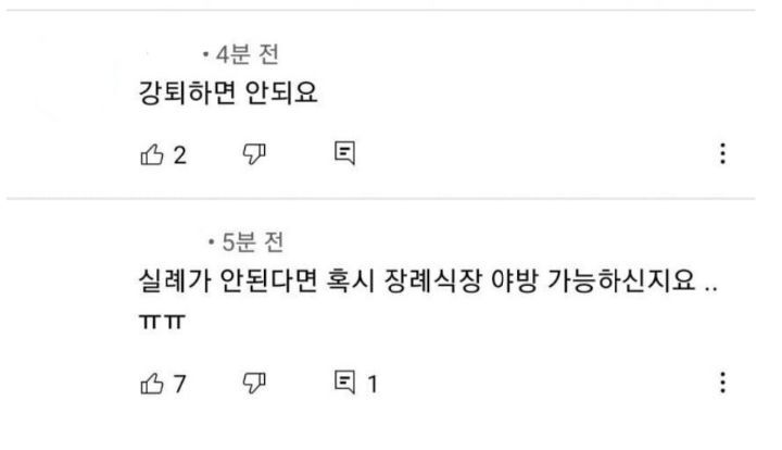 더 경악을 금치못할 사실은 어머니 B씨의 장례식으로인해 미리 공지를 하지않고 휴방을 했다는 이유로 유튜브에 그녀의 탓을 하며 업보라는 식의 수많은 악플이 달린 끔찍한 일이 일어났다는 것.