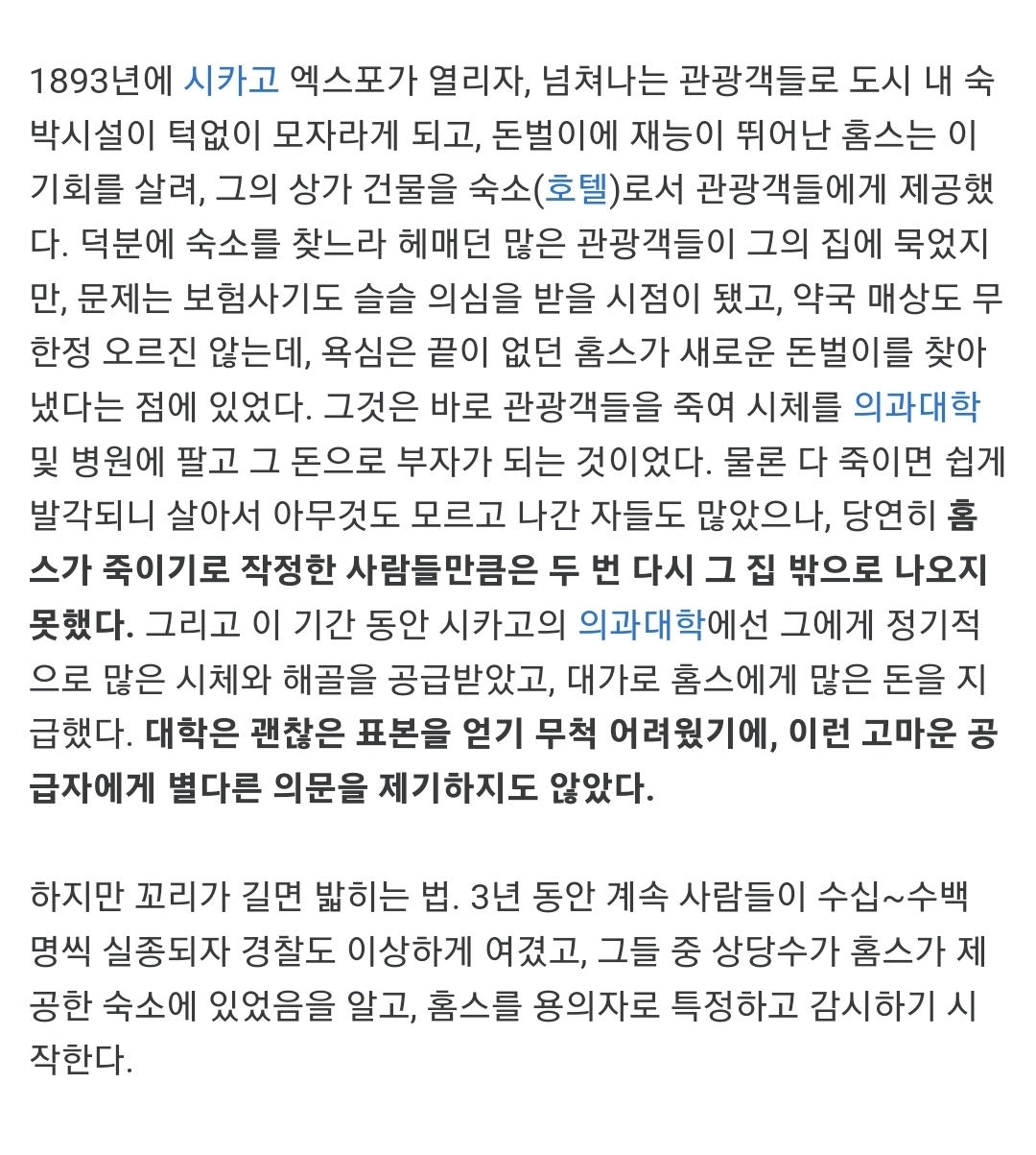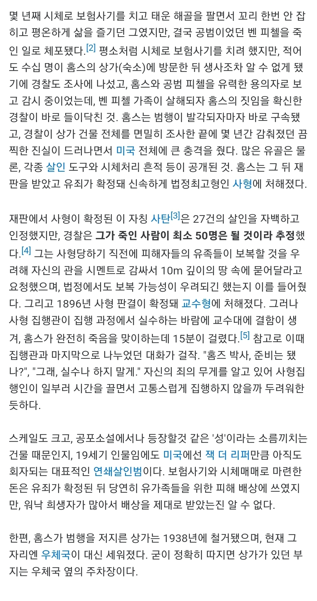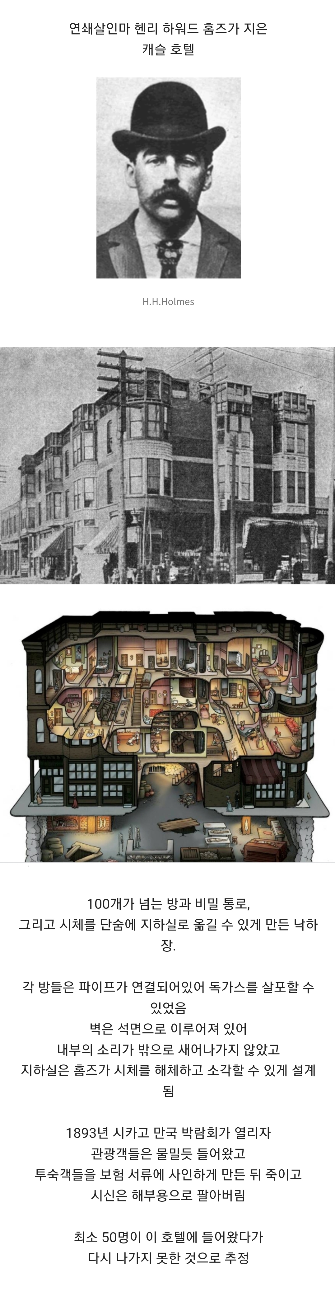 작성자휴휴휴 작성시간 22.12.07 이거 넘나 가짜같은데 진짜여서 볼수록 신기해ㄷㄷ 미드 아메리칸 호러 스토리 시즌중에 호텔편이 저 호텔 기반으로 내용 나오거든? 뭔 살인 호텔이냐고 너~~무 말도 안돼고 진짜 개연성 없다고 보면서 생각했는데 실화 기반이여서 진짜 얼척없었던 기억남!! 돈많는 연쇄살인범은 저렇게 될듯ㅜ