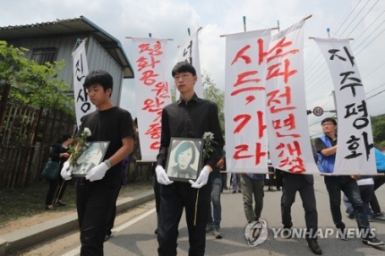 다만 유가족이 딸의 죽음이 정치적으로 이용되지 않길 바란다고 못을 박았음에도 불구하고, 이 날 행사에서 참가자들은 유가족의 발언을 무시하고 '사드 가라', '소파 전면 개정', '자주 평화', '평화협정체결' 등이 적힌 현수막을 들고 행진하는 등 상관도 없는 의제를 들먹이며 정치적인 퍼포먼스를 벌였다.