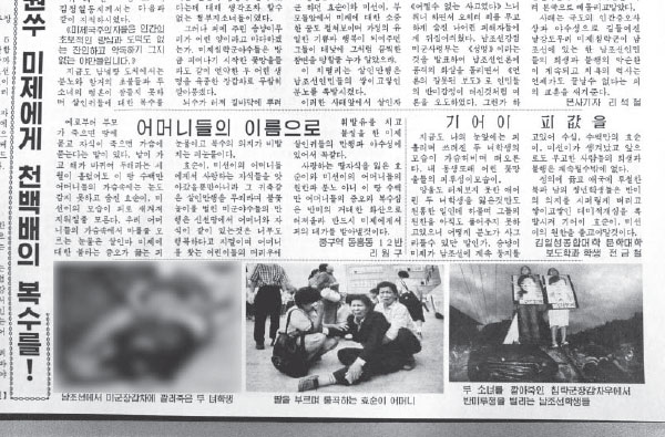 그리고 2002년 당시 서울의 어느 대학가에든 이 사건의 충격적인 사진이 모자이크 없이 걸려 있었다.
