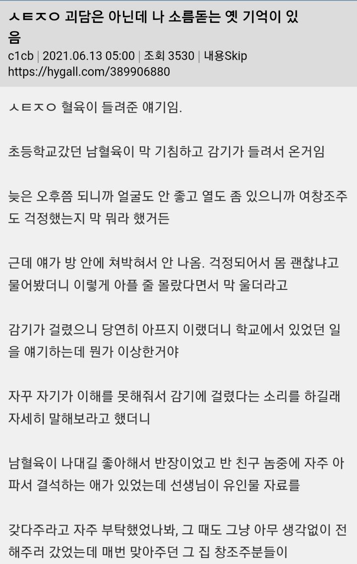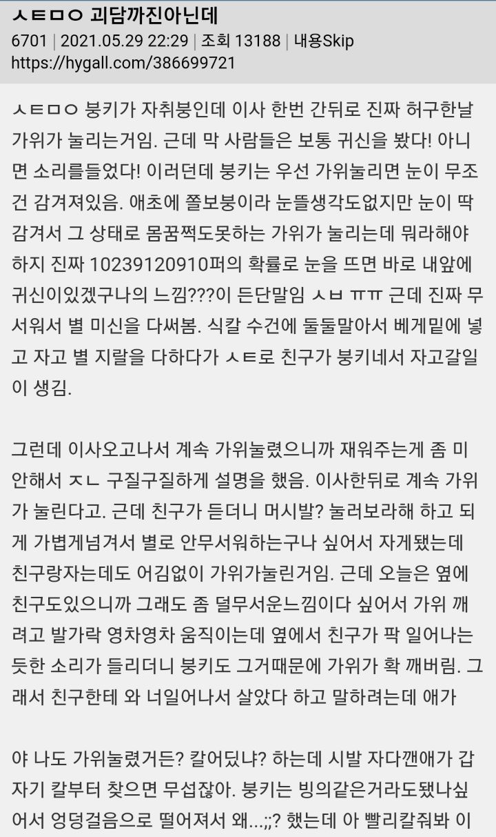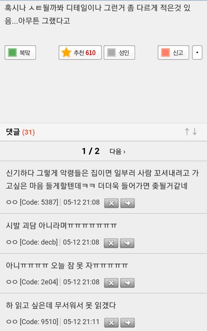 괴담들이 재미는게 많이 올라와서 퍼왔어