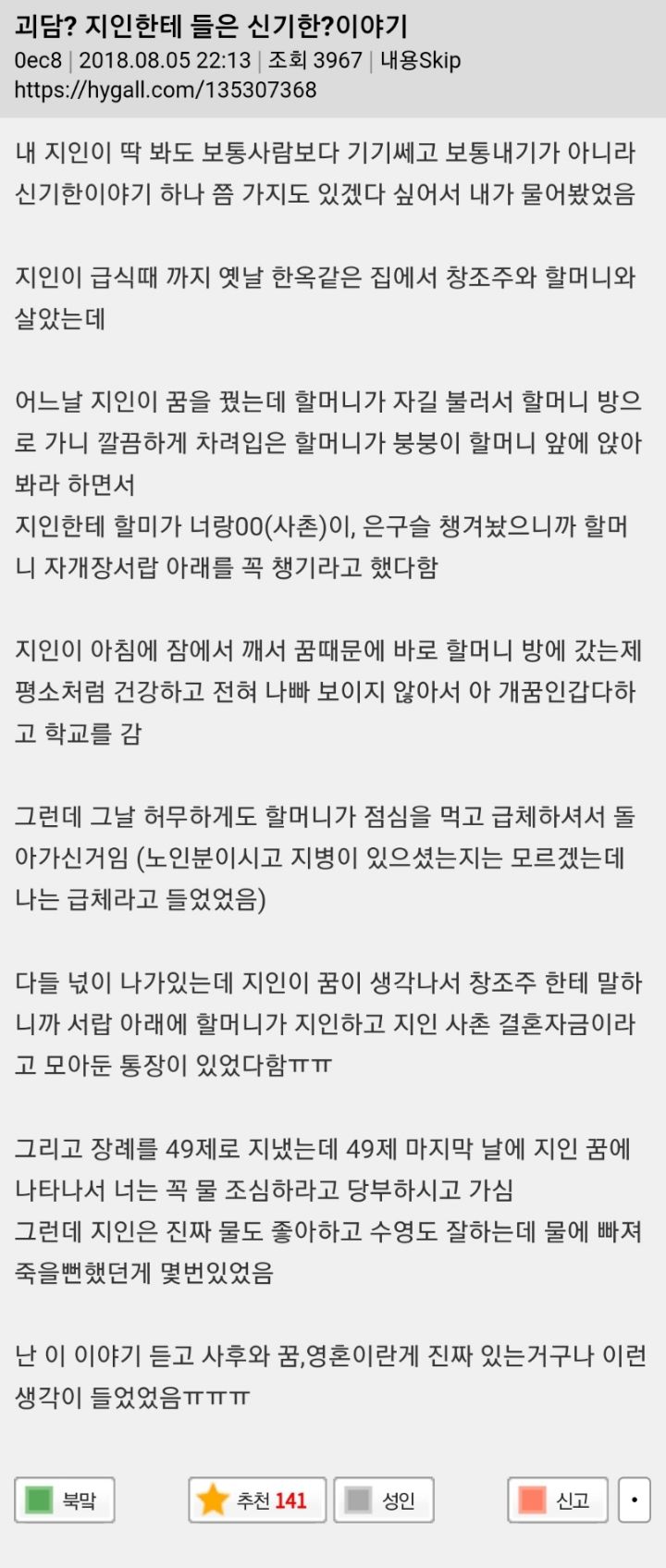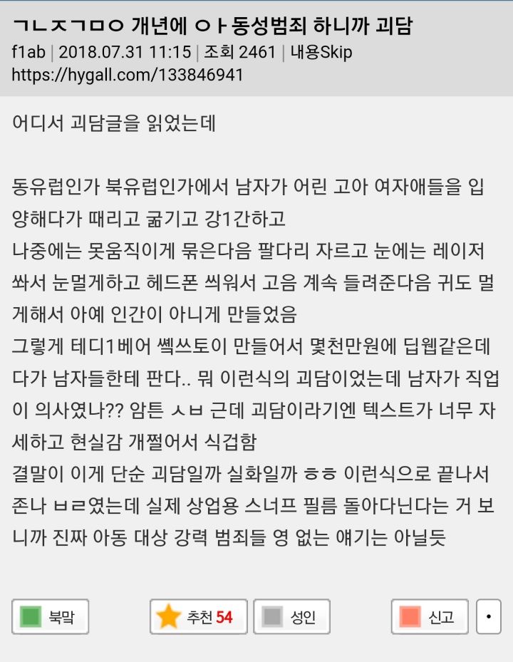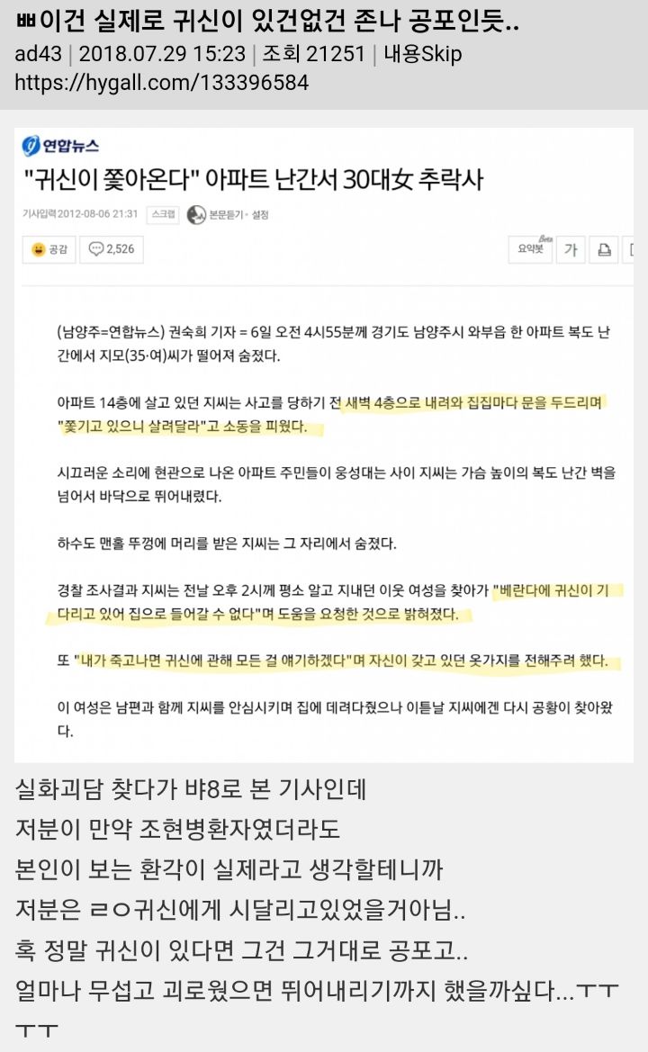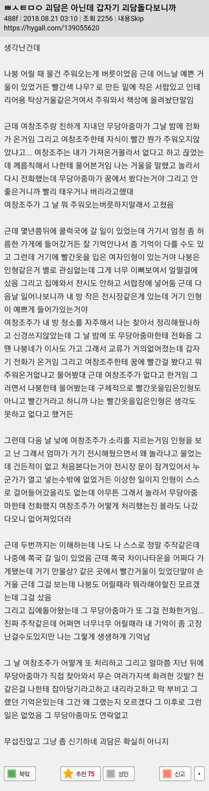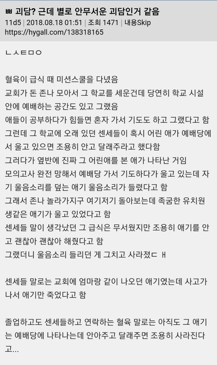 괴담들이 재미는게 많이 올라와서 퍼왔어