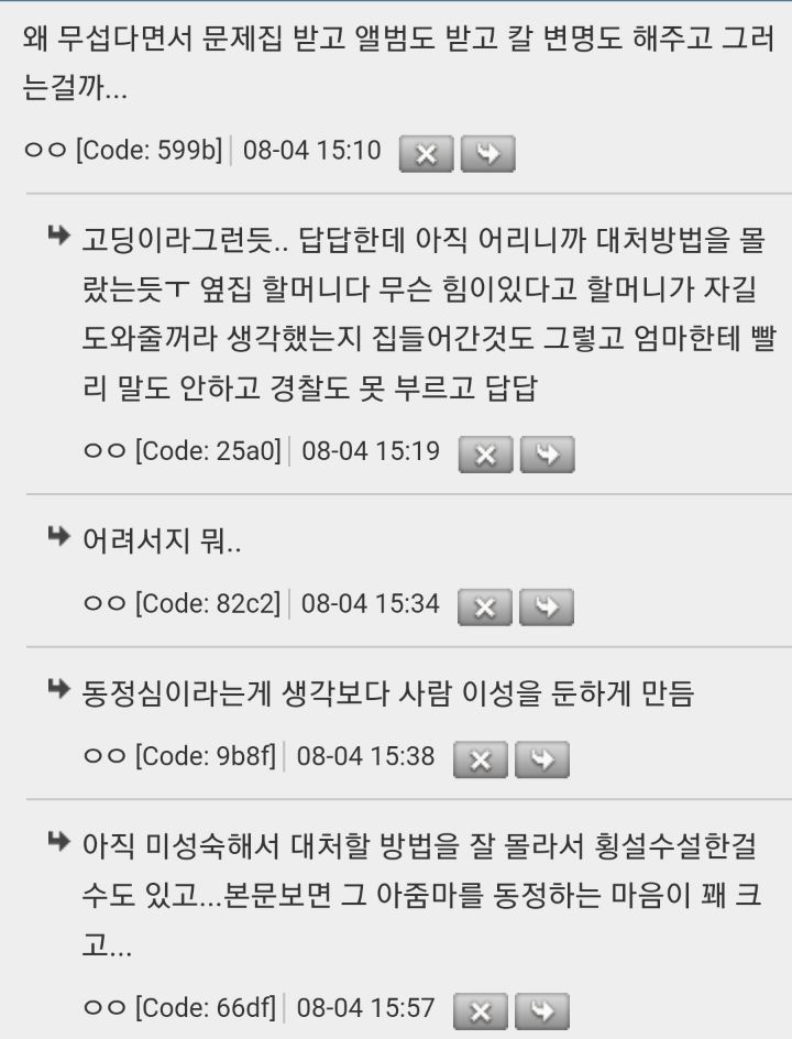 작성자오렌지자몽티 작성시간 23.07.09 미방보고 빵끗 웃었는데 본문보고 정색함ㅠ 무서워ㅠㅠ 재밌어서 두근거려 근데 무서워 읽는 걸 멈출 수가 없어