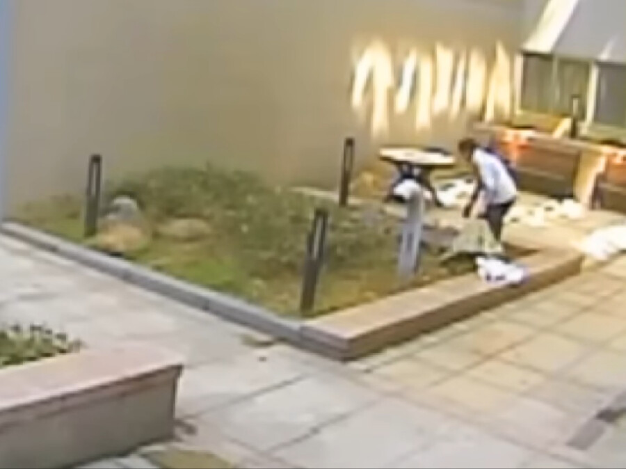 오피스룩을 입은 여성 형태의 사람인지 인형인지 모를 무언가가 화단으로 추락한 사건