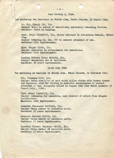 그러나 후에 일부 양심적인 병사들이 식인에 관한 증언을 했고, 미군도 조사관을 파견하는 등 본격적으로 수사에 착수하여 결국 괌 군사재판에서 다 까발려짐