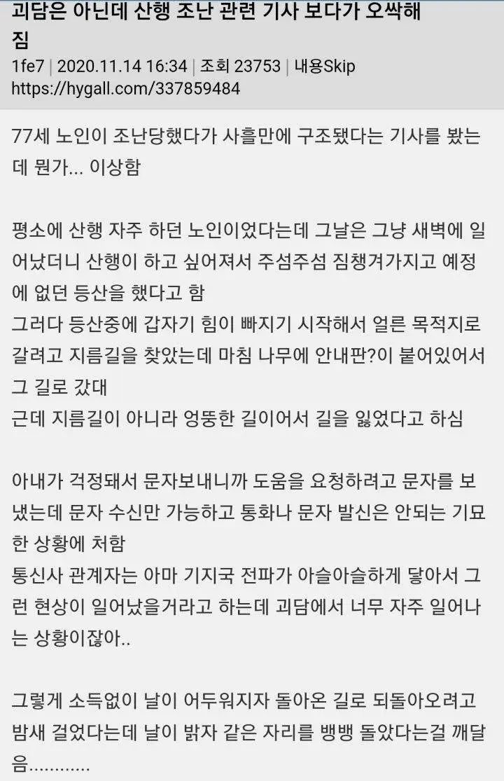작성자난 정말 짱인가 봐 작성시간 24.03.25 재밌다!! 산은 진짜.. 너무 신기해 나도 전에 타지역 갔다가 돌아오는 길에 옆에 산이랑 저수지 낀 길로 돌아오게 됐는데 시간이 좀 늦어져서 밤이었거든 오면서 와 여기 길 디게 무섭다~~ 오싹하다 하면서 왔어 근데 그 담날 엄마한테 어제 그쪽길로 해서 오는데 무섭더라~ 하니까 엄마가 그 길로 오는 거면 좀 일찍일찍 다녀야지 왜케 늦게 왔냐고 거긴 낮에도 헛게 보인단말이야! 하면서 뭐라고 한 적 있었어 ,, 신기해,,