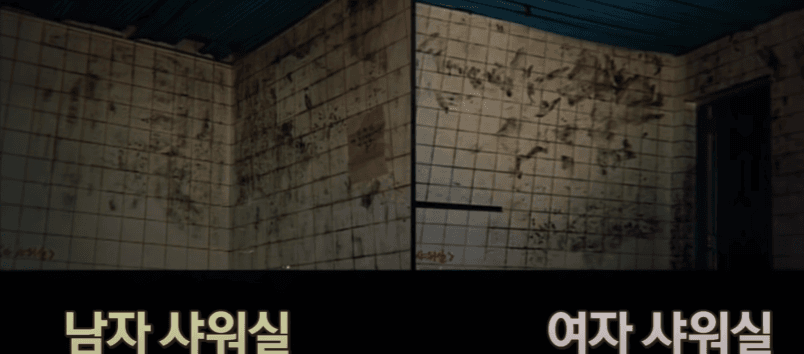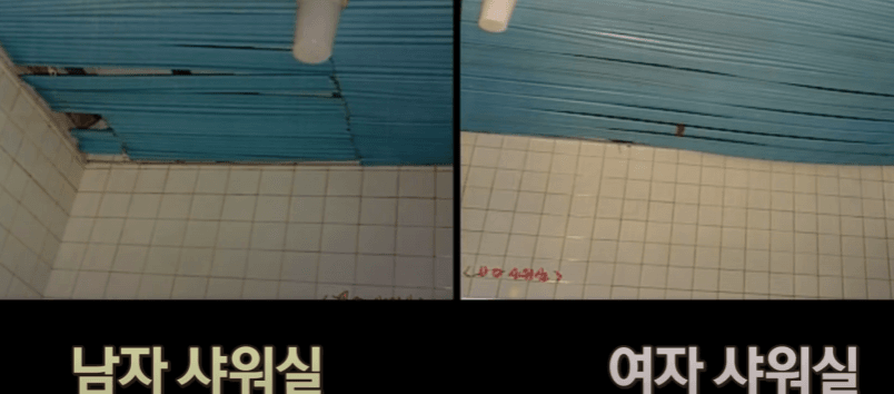 바로 남자 샤워실과 여자샤워실 천장에 열고 닫은 흔적이 발견된다..