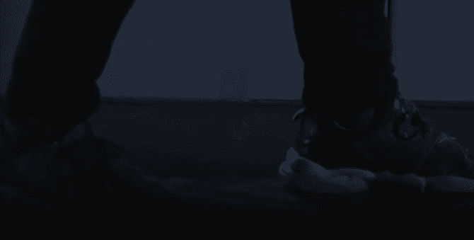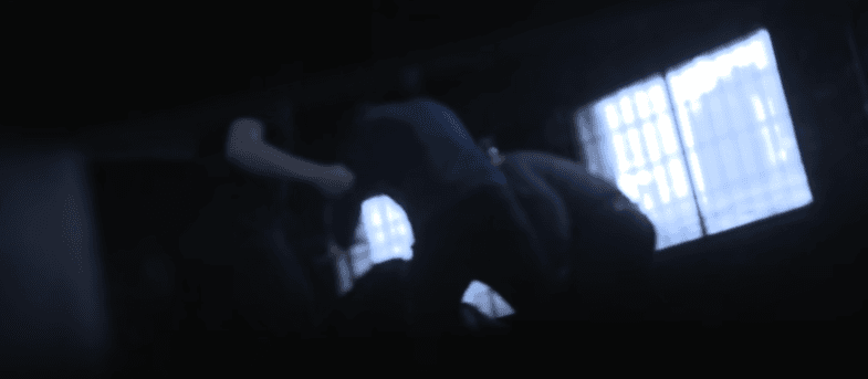 창고안을 둘러보던 경찰이 갑자기 발걸음을 멈춘다.