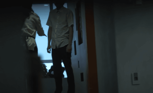박대표 남편은 천장 위에 스윽 고개를 올리고 손전등을 켜보니... 남자가 보인다...