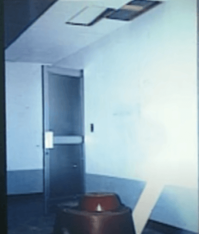 휴게실에 가보니 천장에 구멍이 하나 뚫려 있었다