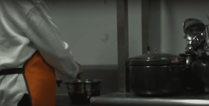 주방에서 일하고 있는 장씨 아줌마.