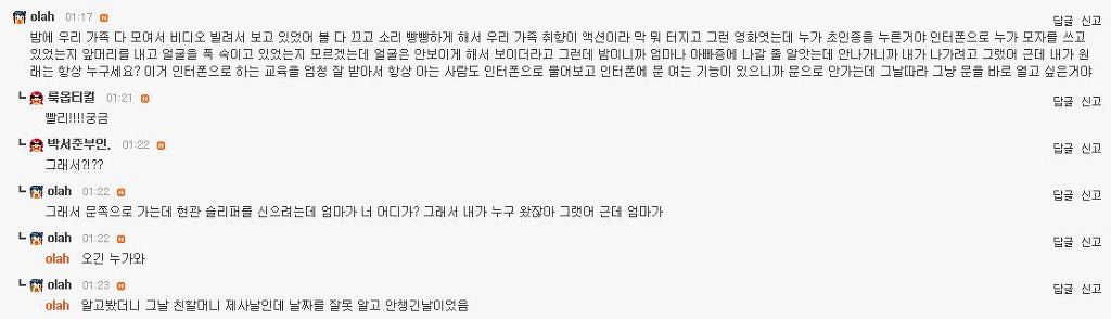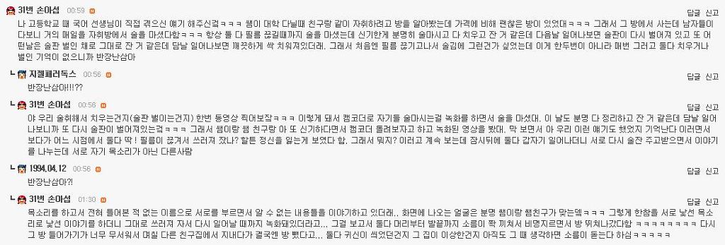 다시 그 방 들어기기가 너무 무서워서 며칠 다른 친구집에서 지내다가 결국엔 방 뺐다고...