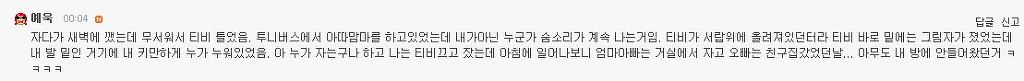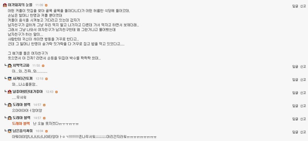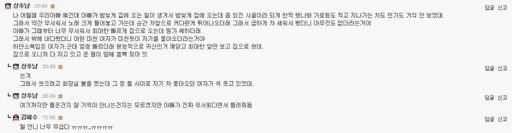 [귀신]쩌리방 <더운여시들 !!!!!!무서운이야기 풀고가자.........................!!!!!!!!!!!!!!!!!!!!>댓글 캡초ㅑ(모배有)