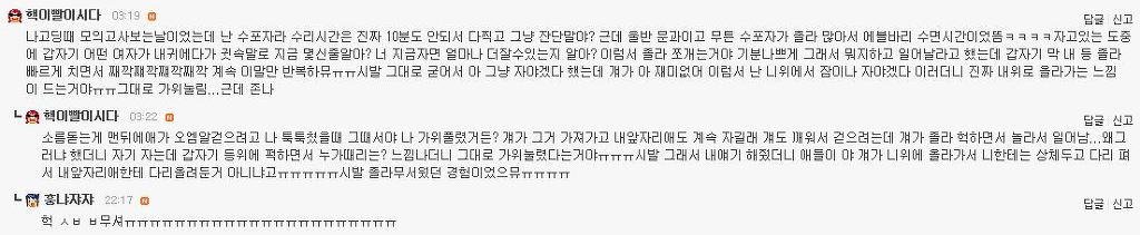 그래서 그냥 나와서 여자친구가 남자친구한테 왜 그런거냐고 물어봤는데