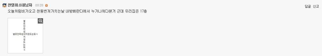 모배) 오늘처럼 비가 오고 천둥번개가 치는날 내 방 베란다에서 누가 나 쳐다본거. 근데 우리집은 17층.