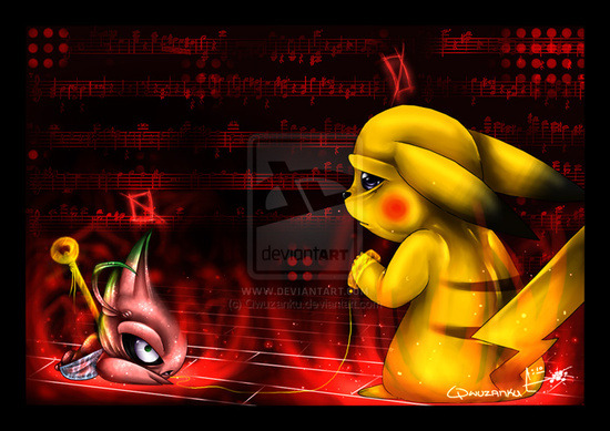 배틀에 진 포켓몬이 밑으로 내려가는 것과 다르게, 세레비의 뒷모습이 그냥 사라진다. 피카츄는 그냥 그대로 있고, 내 패배라고 뜨지도 않는다. 피카츄는 일반적인 4가지 공격 대신 또 다른 공격을 한다.