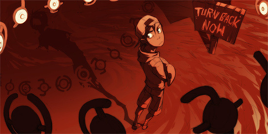 나는 브케인이 플래시를 가지고 있었다는 것을 기억하고, 포켓몬 메뉴로 가 플래시를 눌렀다. ‘HURRY는 플래시를 사용했다!’같은 메시지 같은 것은 뜨지 않았고, 방은 그냥 바로 밝아졌다. 하지만 나는 곧바로 후회감이 들었다. 방은 소름끼치는 핏빛이었고, 남쪽으로 향하는 회색 길이 나 있었다.
