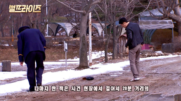 시체 상태도 희한함. 한겨울인데 윗옷을 벗어서 품에 안고있고 신발도 안 신고 있었음