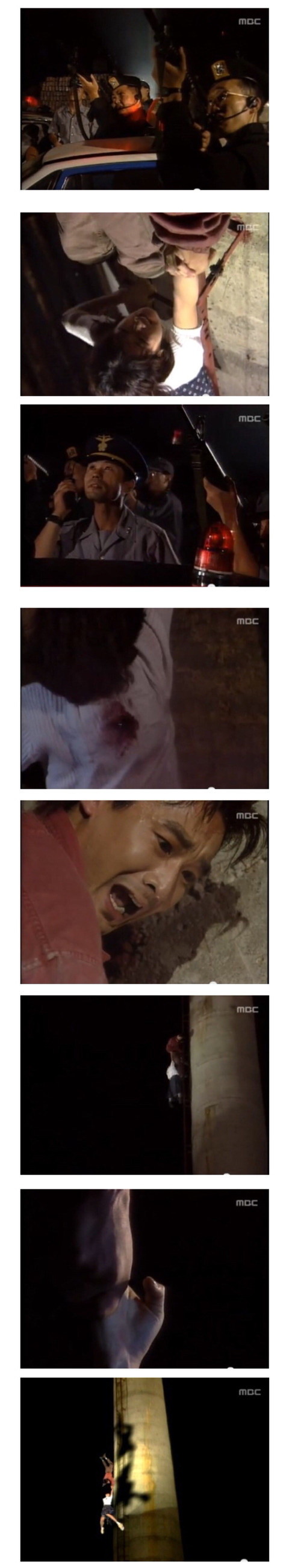 마리를 잡은 손의 힘이 빠지게되고 결국 사다리를 잡은 손을 놓고 마리와 함께 추락하며 드라마는 끝나게 됩니다.