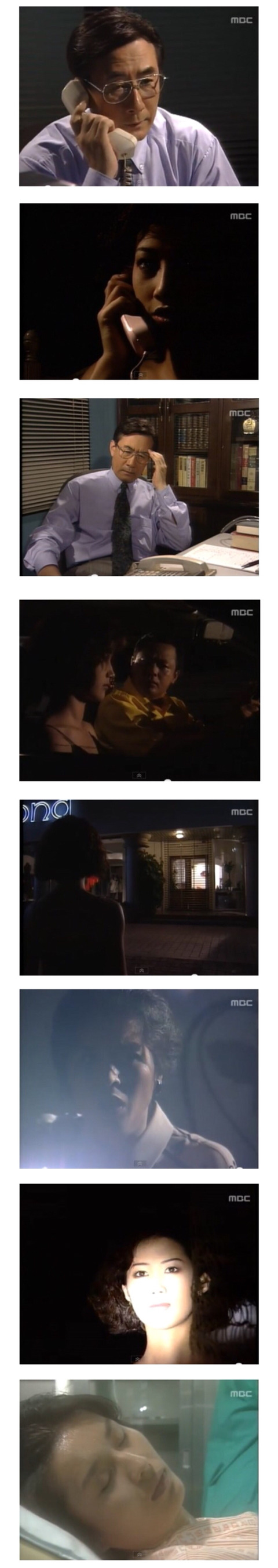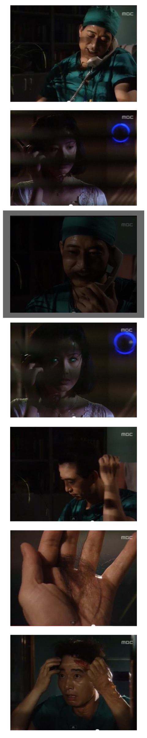 목소리가 듣고싶어서 전화했다며, 오늘은 간단한 낙태수술 하나만 있어서 일찍 끝날 것 같다는 운철의 얘기에 두 눈에 푸르게 빛나며 분노하는 마리(M)