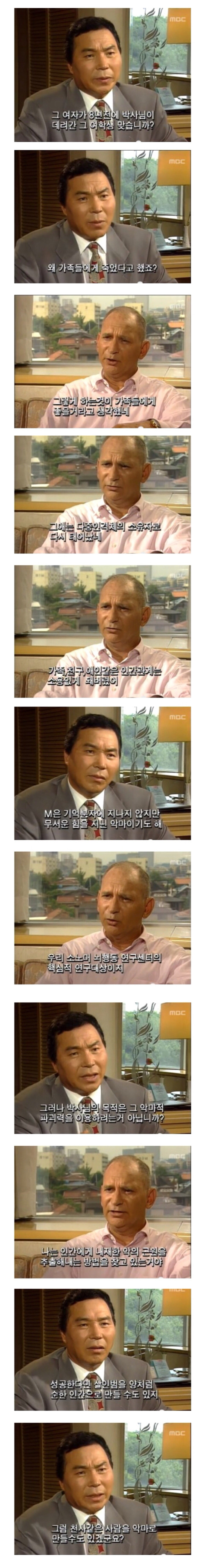 프롬박사는 인간에게 내제된 악의 근원을 추출해내는 방법을 찾고 있었다고 대답합니다.