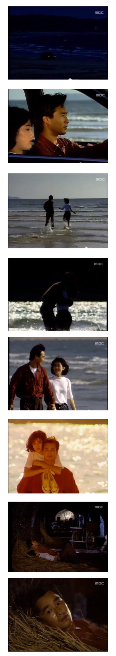 차에서 내려 바다로 뛰어들려는 마리를 말리다가 갑자기 훈훈한 신혼여행 분위기가 연출됩니다......
