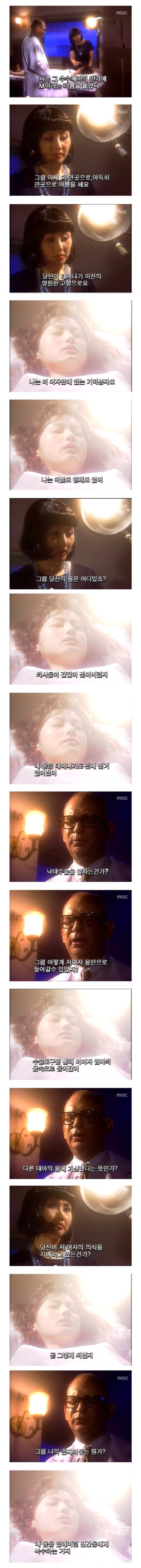 M은 갑자기 눈을 뜨며 “나를 만들고, 갈기갈기 찢어놓은 장본인(홍원장)에게 물어보라”고 얘기합니다.
