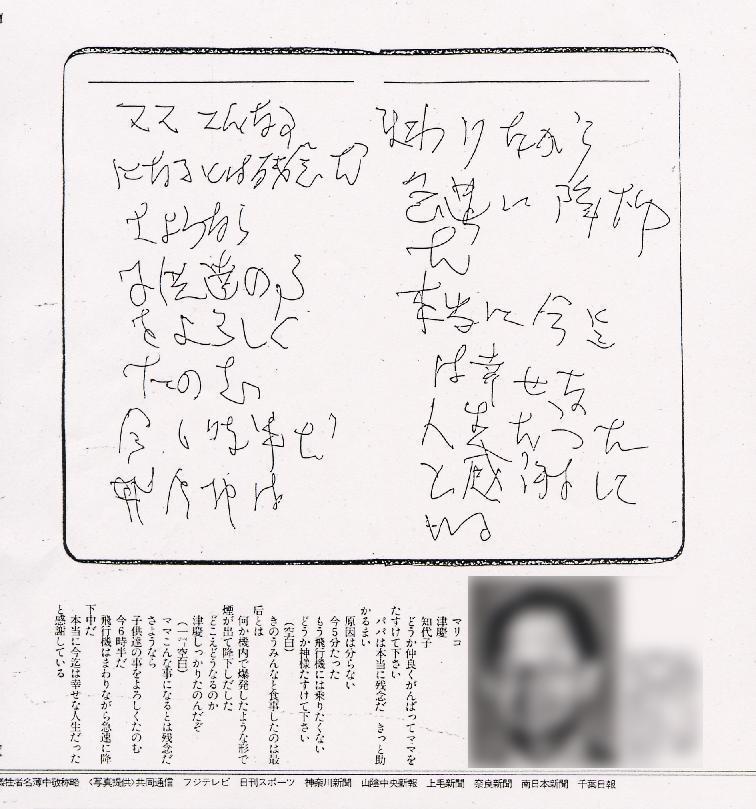 이 사고는 30분동안 체공하다가 추락한 사건이기에 사건현장에서는 유서가 유난히 많이 발견 되기도 하였다.