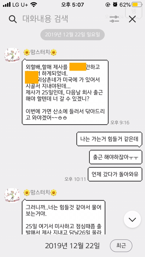 그러고 며칠 뒤에 엄마한테 카톡이 왔어