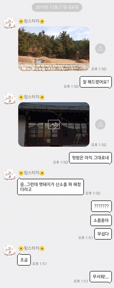 나: 엄마 우리 묘지 손댄거 있어?