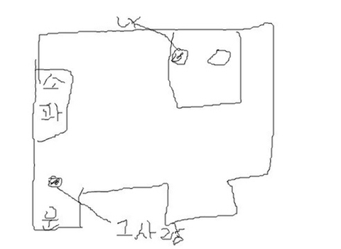 나 " 아니 어떤 남자가 하이바쓰고 철가방 들고있는채로 우리 방문앞에서 계속 서서 소파를 처다보고 있었어 "