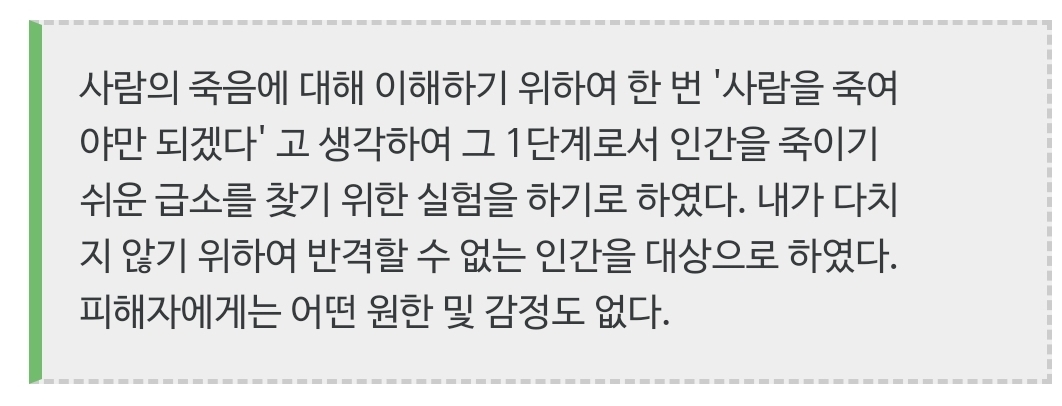 그 이후 그는 가학성을 느끼기 시작했다고 한다.