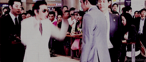 공항에 마중나온 팬들 앞에서 반갑다고 발차기