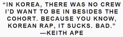 (해석 : 한국에서는 코홀트 빼고 내가 들어가고 싶었던 크루가 없었어요. 왜냐하면 당신들도 알겠지만 한국 랩은 구리거든요)