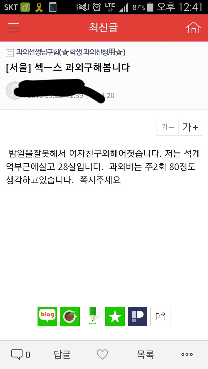 근데 !!! 이 카페 자체가 중고딩들이 와서 과외 구하는 그런 카페라서 이 부분에서는 논외없이 잘못 되었슴당~~~