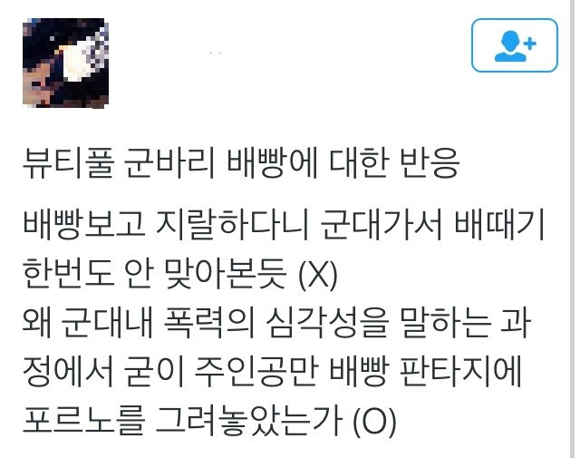 레진에서 디피라는 군대 폭력 고발 만화 연재하시는 작가분이 뷰군 배빵 이후 꺼낸 의견