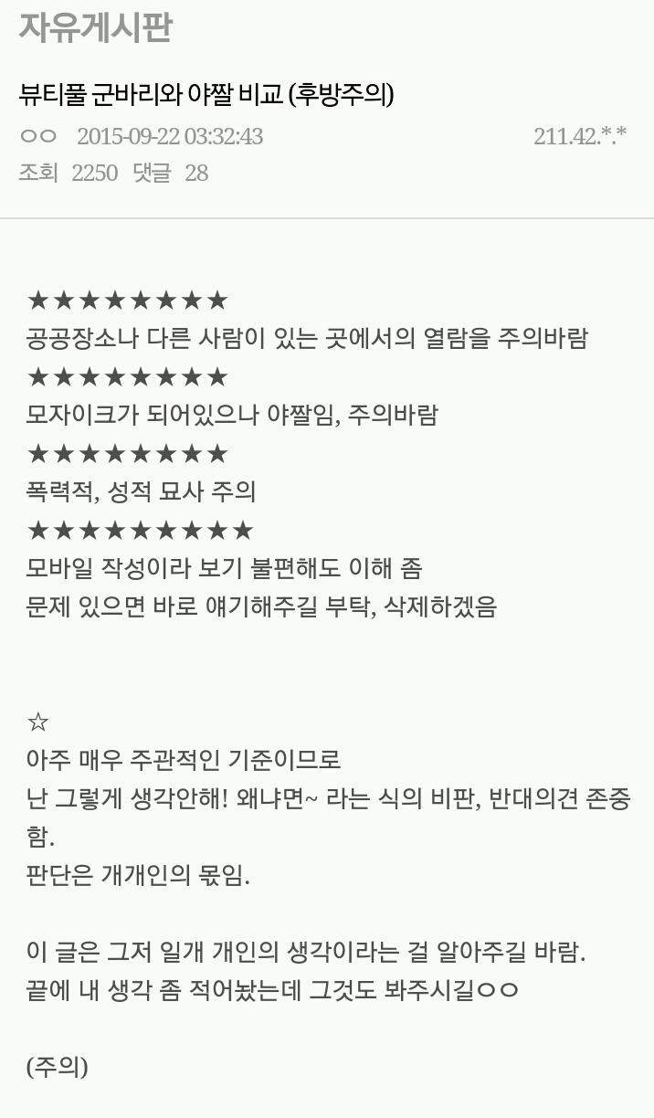 뷰티풀군바리 수아 배빵이 성적묘사라는 진정한 근거가 있다.