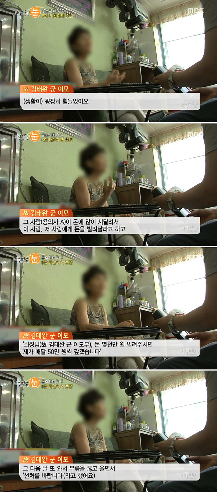 태완이의 집에도 몇 차례 찾아와 무릎을 꿇고 울며 돈을 빌리려 했으나 형편이 되지않아 거절했고