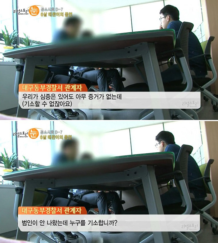 진술하였지만, 태완이의 나이가 어리고 충격으로 기억이 혼동될 수 있다는 이유로 증언으로 인정받지 못하였다.