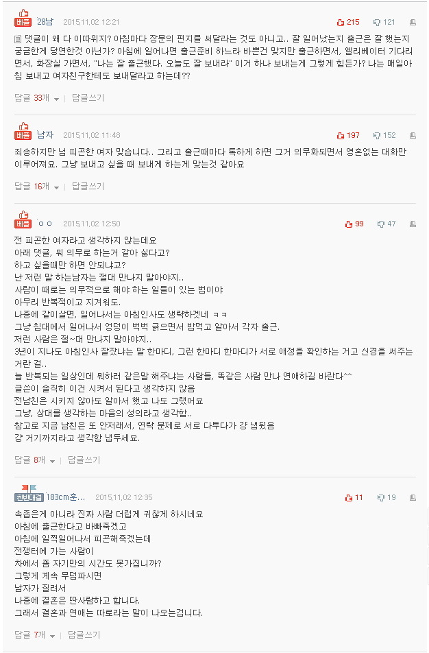 저도 똑같이 출근문자 안보내기엔 남자친구가 엄청 서운해할걸 알아서 서로 기분상하는짓은 하기싫어요