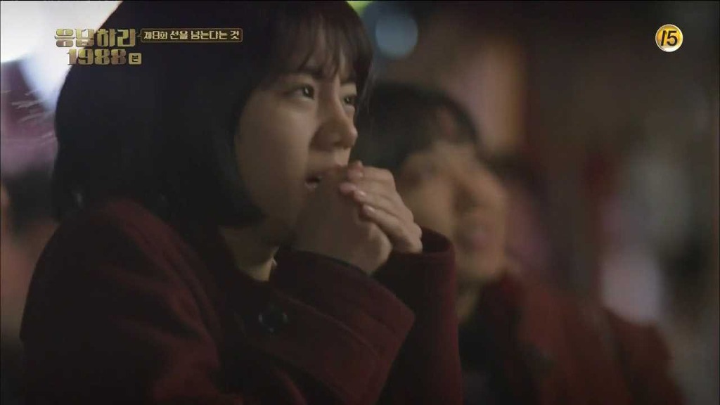 중압감을 이겨내고 경기를 끝낸 택이에게 손을 흔드는 덕선이