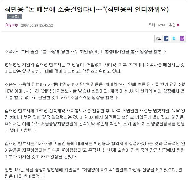07년도 전에도, 그 후로도 최민용은 소속사와 분쟁이 좀 심했던 것으로 알랴짐...