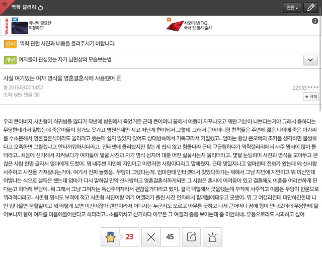 갤에올라오는 모르는 여자사주를 죽은 사촌형과